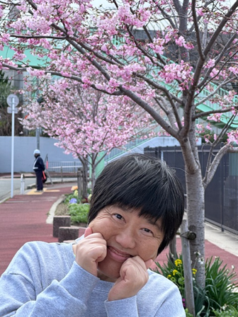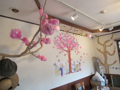 サポネの家の玄関の壁にも創作で作ってくれて桜が徐々に咲いてきています。