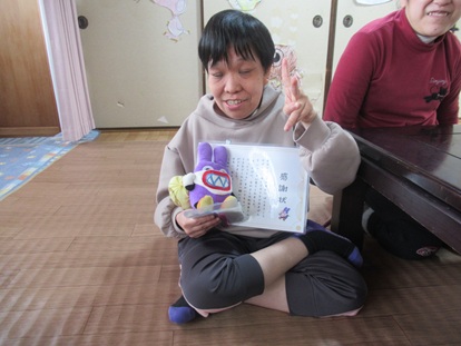 感謝状には好きなキャラクターも載せてもらっていたので、喜んでおられました。
