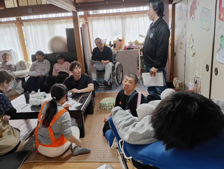 今回は小学校まで避難せず、講師のスタッフがレジメを用意して頂き和室にてレジメを使用して避難訓練について色々話し合いを行いました。