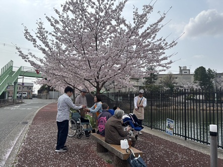 いつも写真でしか見ていないですが、今日池の桜を利用者さんと見に行きました。