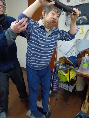 目新しいものが大好きなご利用者様がさっそく測っておられました。スタッフの支えもあり満足した表情でした。