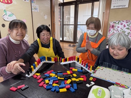 室内組は、和室でドミノを立てていました。