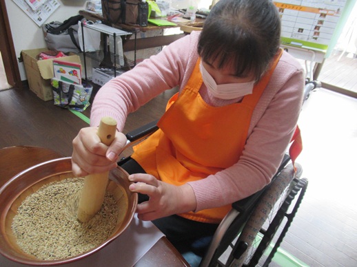 本日は、利用者様がランチで使う用にすりごまを作ってくださりました。