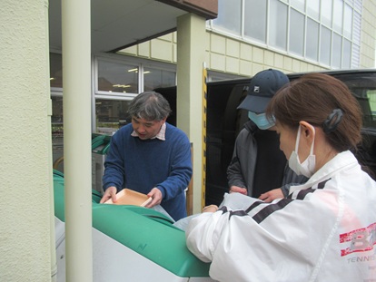 利用者さんが来られたタイミングでは雨が止んでいたので午前中に資源ごみをスーパーの回収ボックスに持って行ってもらいました。