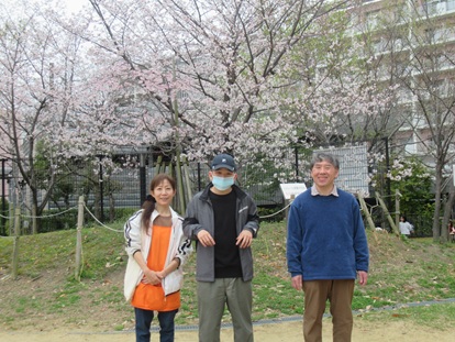 その後よく散歩で通るグラウンドに立ち寄り、桜を背景に写真を撮り少し体を動かしました。