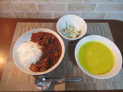 ランチに使うサラダの調理のお手伝いをしてくれました。