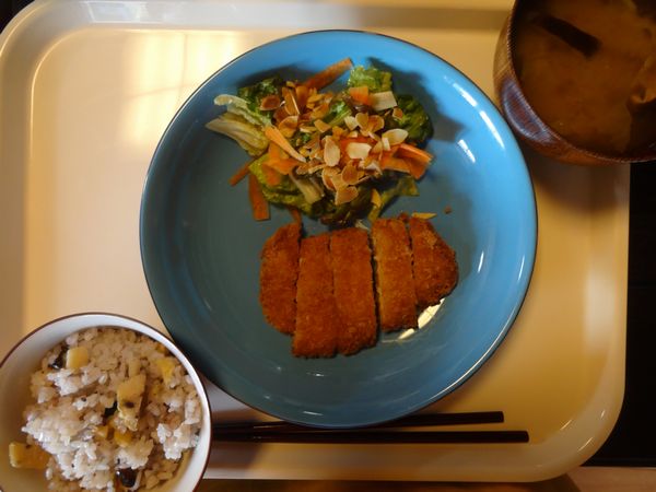 十六穀米もあり、竹の子の煮物と一緒に食べるのは、和風でいいですよね。