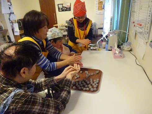 そのあとは利用者さんとおやつのお団子作りのお手伝いを一緒にしました^^
