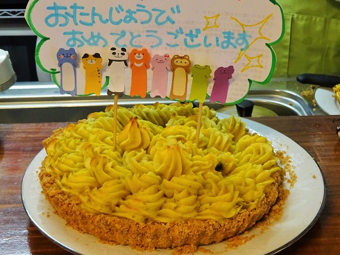 バースデー用にキッチンの方がとても立派なスイートポテトタルトを作ってくださいました!