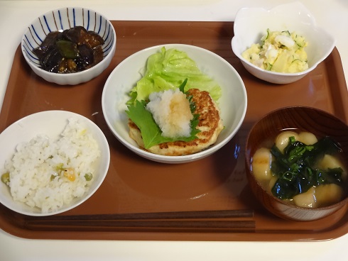 豆腐ハンバーグはとてもふんわりとした仕上がりになり、大根おろしと紫蘇とポン酢で食べたので