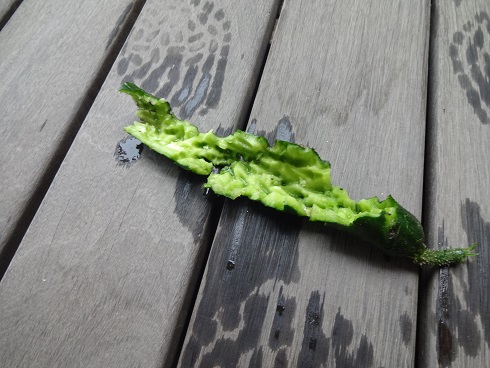 サポネの家で育ている胡瓜がカラスに食われるという残念な事がありました。。。