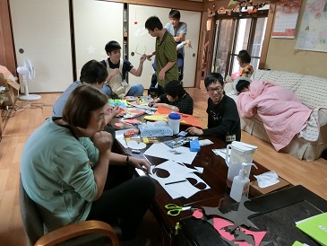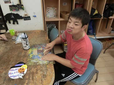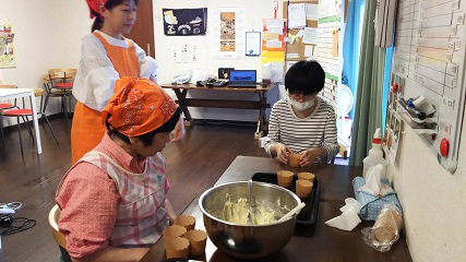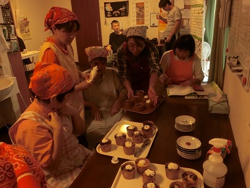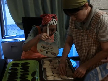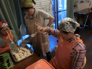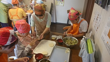 留守番組の様子です。午前中は餃子作りを行いました。