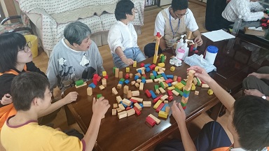 午後からは積み木をどれだけ高く積み上げられるかを競うゲームを行いました。