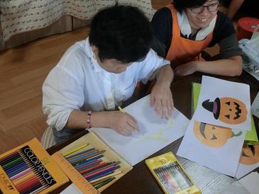 散歩の後はカボチャに色塗りや、鉛筆を削ったりしました。