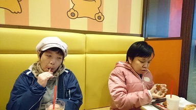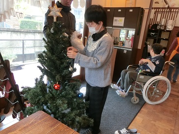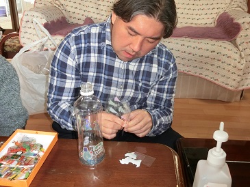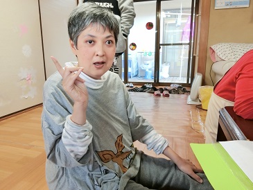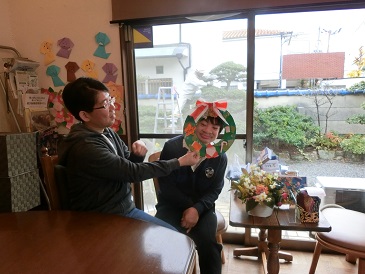 おやつ前に利用者さんと一緒に玄関で日向ぼっこをしました。