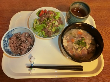 野菜のコンソメスープにこれでもかと沢山野菜が入っていて、とても美味しかったです。