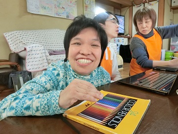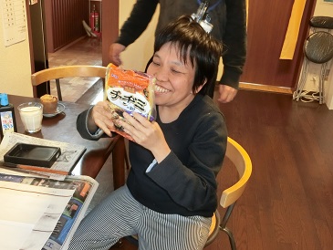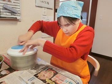 (写真の利用者さんは、今日はキッチンの手伝いをすると朝から気合が入っていました。)