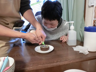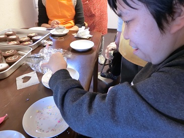 午後からおやつ作りのお手伝いで、今川焼きにトッピングを行いました。