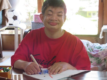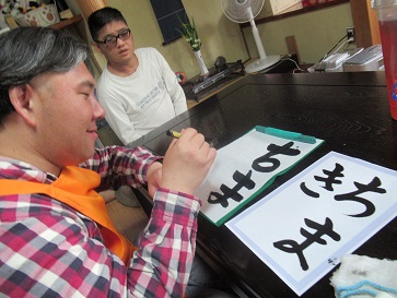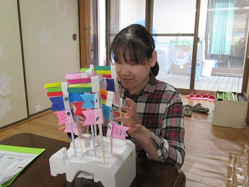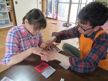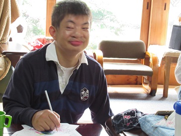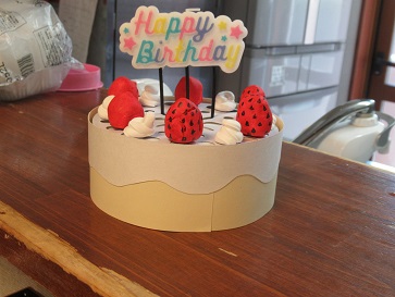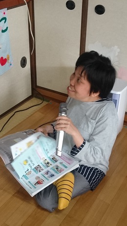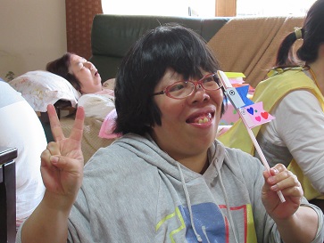 可愛らしい被り物を貰ったので利用者さんに被って貰いました。
