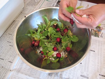 今日のランチのオムライスを包む玉子を、みそ汁茶碗に一人分ずつに分けて割っていきました。