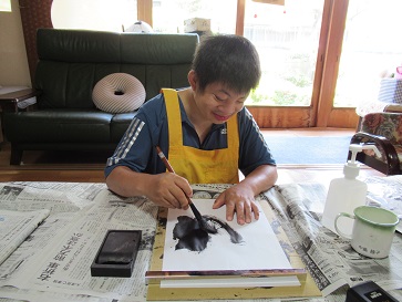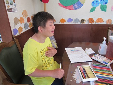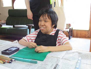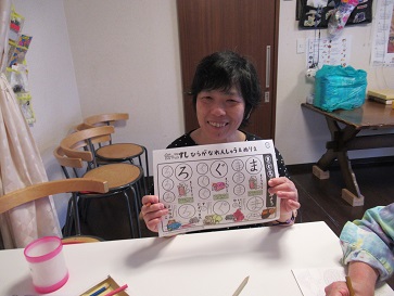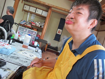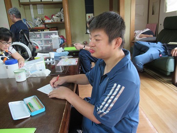 こちらの利用者さんは立って書く方が上手く行く様で、実に器用に書かれていました。