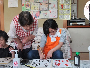 今日も書道の得意なサポネスタッフが講師を務めてくれました。