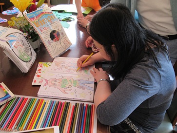 スタッフが書いた文字に対してアドバイス中の写真です。