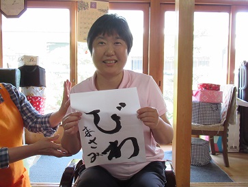 「びわ」という文字に曲線が多いため、どの利用者さんも可愛らしい文字になっていました。