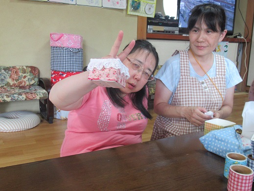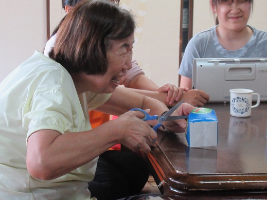 牛乳パックを再利用して、小物入れ作りをされました。