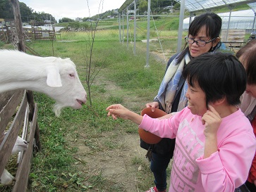 普段見慣れない山羊は少し怖かったのか、少々びっくりされているご様子でした。