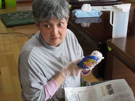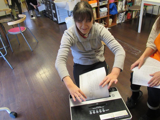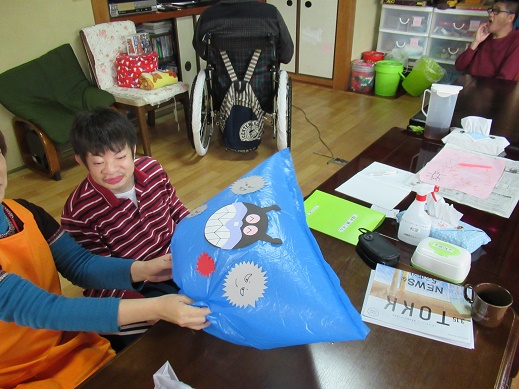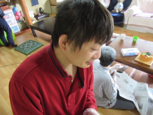 介護に関する話題が書かれたカルタを利用者さんが一つ一つ読まれています。