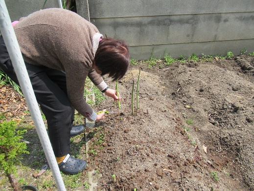 今日は朝から庭の畑でアスパラの収穫作業をしました!