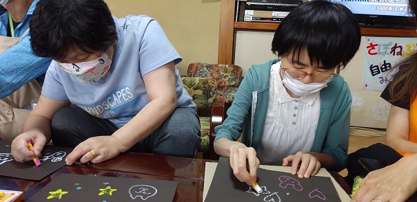 午後からカフェの壁面に貼る星の工作を皆で作りました。