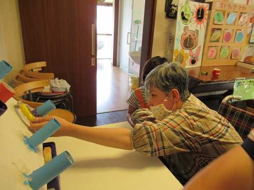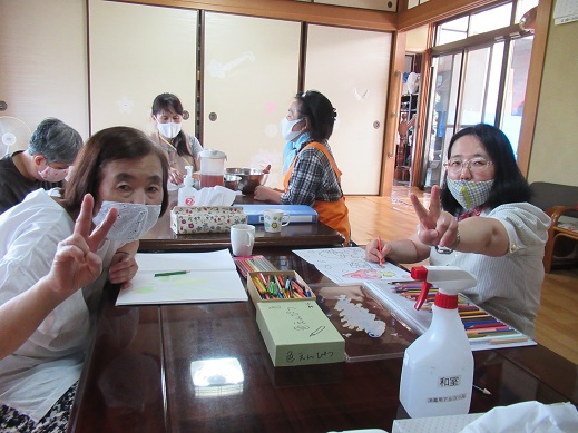 その後は無理に外出はせず、室内で皆さん塗り絵やちょっとした運動などをして楽しまれていました。