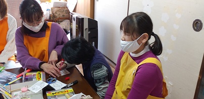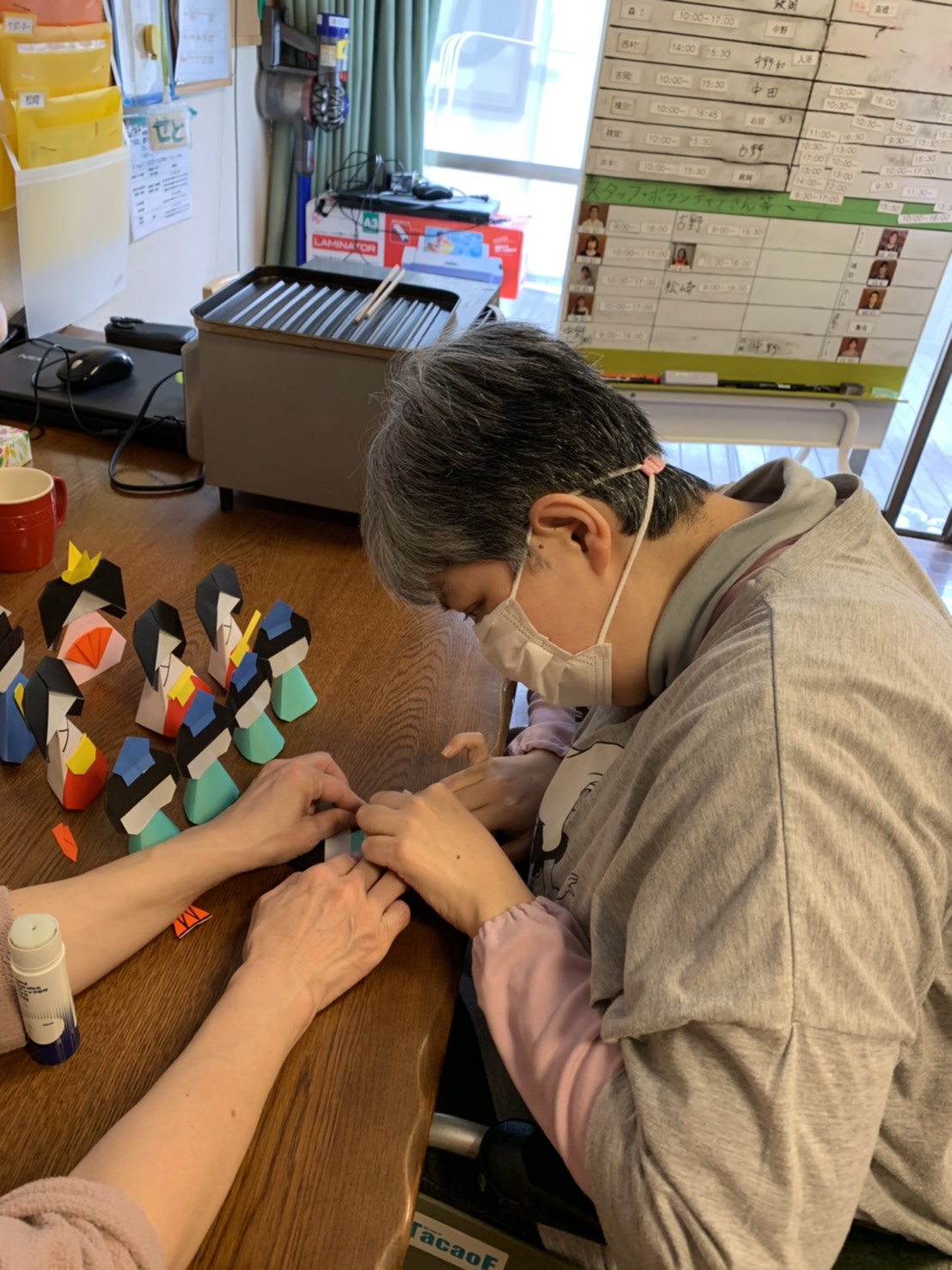 折り紙でひな人形づくりをしています。