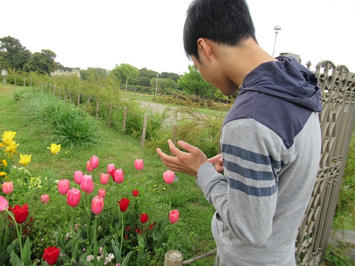 先日とは違うメンバーで、広々とした公園内を散歩したり、チューリップ花壇を楽しみました。