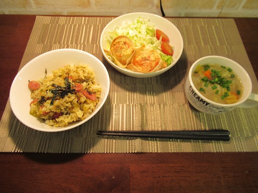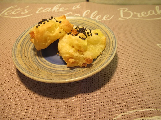 ・かにかま、エビポテトのぎょうざの皮包み焼き
