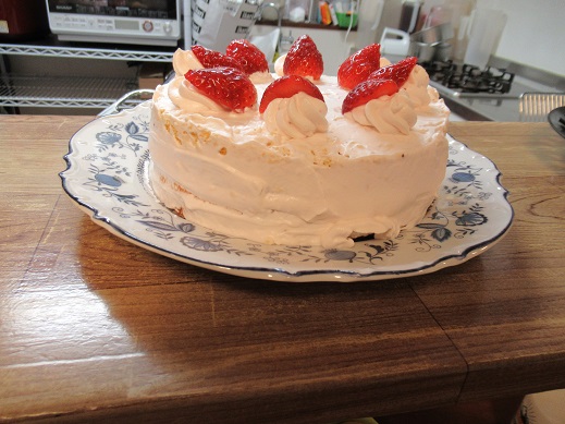 誕生日と言うことで、今日のおやつは手作りのショートケーキでした。