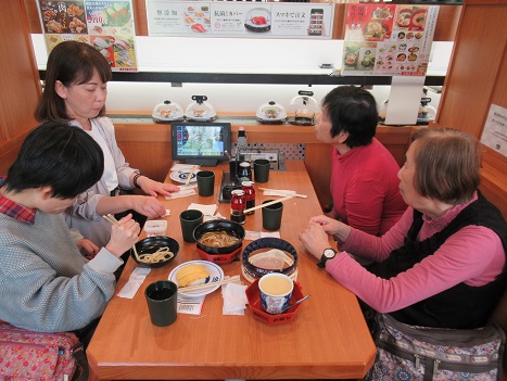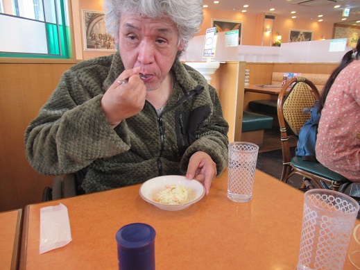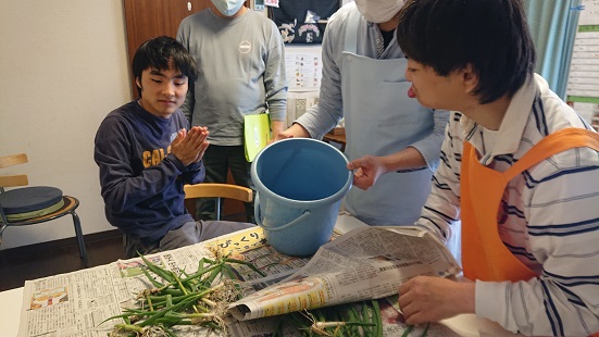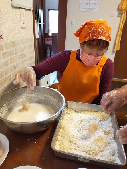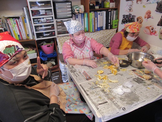午前中、利用者さんと一緒に甘夏剥きをしたり、散歩に出掛けたり、昼食の準備のお手伝いなどしていました。