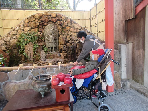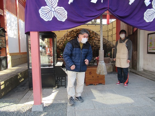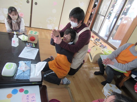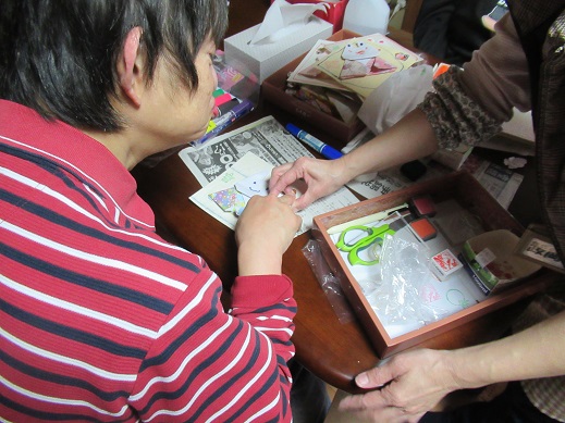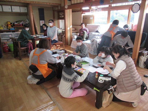 今日は節分がテーマの巨大絵に色塗りをしていきました。