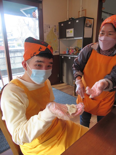 私は調理場で、おやつで使用する黒糖をすりこぎで潰していく作業を手伝いました。