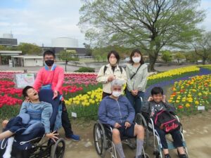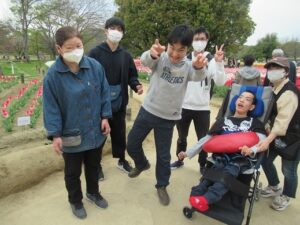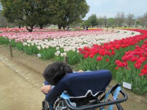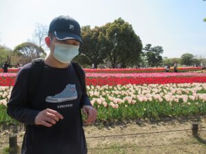 食後は緑地公園内を散策しつつ、綺麗に咲いているチューリップなどを見て楽しみました。