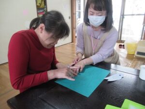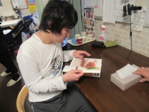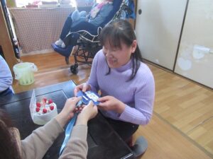 写真の利用者さんが別の曜日に通所している事業所のスタッフが様子を見学しに来られていました