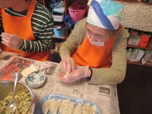 午前中に今日のランチのぎょうざ作りを皆で行いました。