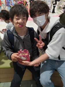 他の利用者さんはたこ焼きと飲み物を買って美味しそうに食べていました。