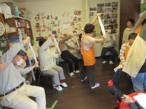 今日のサポネの家では、昨日行ったタオル体操を皆さんでしました。