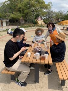 ブランコにのったり、テーブルでおやつをつまんだりしてピクニック気分でしたね。