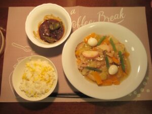 ・鶏とさといもの煮物 いんげん結び糸こんにゃく