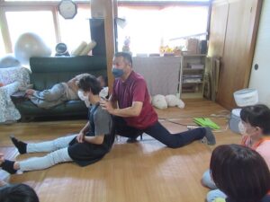 午後からはサポネのスタッフが講師をしていただき「筋力に頼らない楽な介護術」を教えて頂きました。
