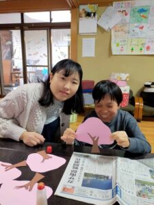 午後に、外の道路の街路樹の剪定作業をしており、ある利用者さんはとても興味津々に見ていました。